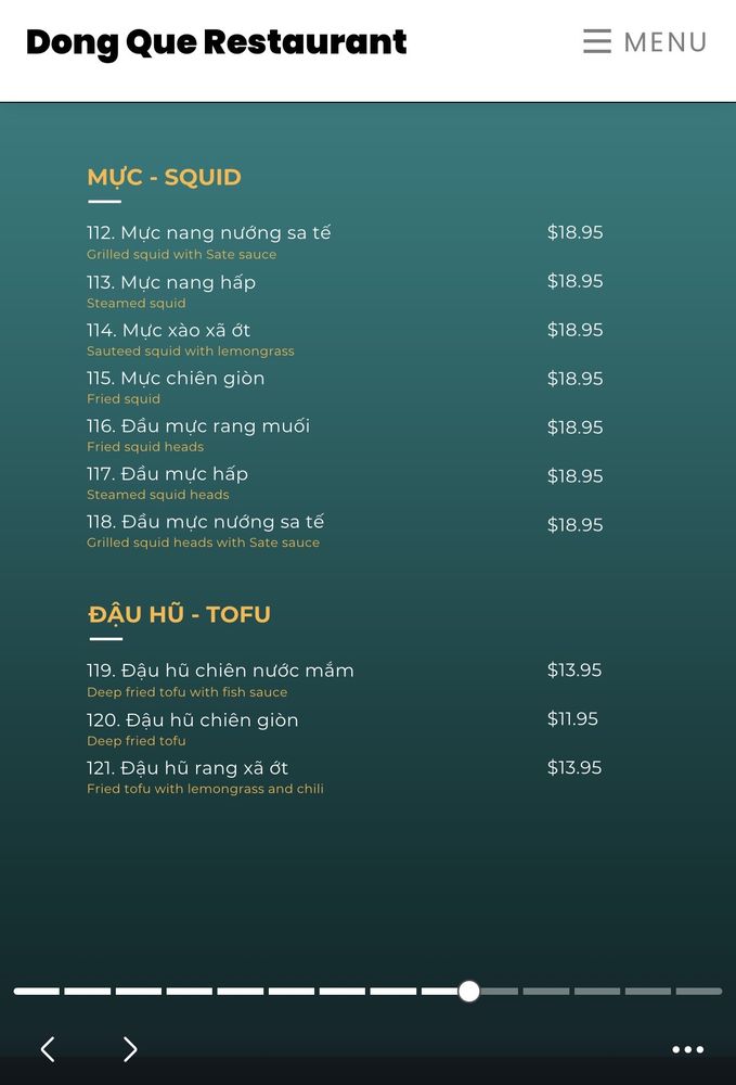 Dong Que Restaurant, located in San Jose, CA, offers a mix of authentic Vietnamese cuisine with exceptional flavors. The urban Vietnamese taste shines through in dishes like oysters, fish sauce chicken wings, and burnt rice appetizer. The menu also features seafood delights such as scallops, razor clams, and coconut snails. Mango salad with seafood and Thai hot pot are refreshingly delicious options. The friendly staff and quick service enhance the dining experience. With a range of options for brunch, dinner, and late-night meals, Dong Que Restaurant caters to a diverse palate. The cozy ambiance with outdoor seating and attentive waiters adds to the overall dining pleasure. Don't miss out on the unique flavors and delightful dishes at Dong Que Restaurant!